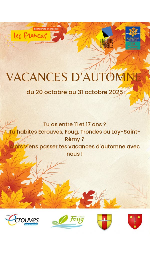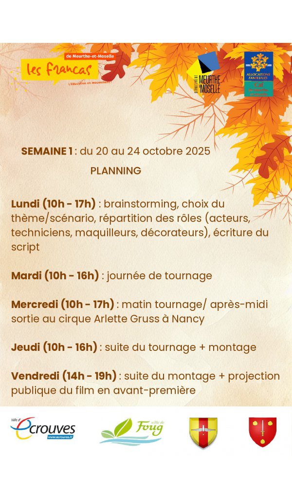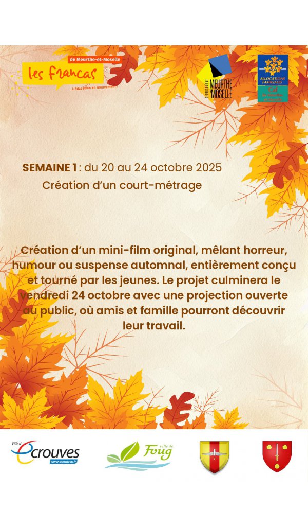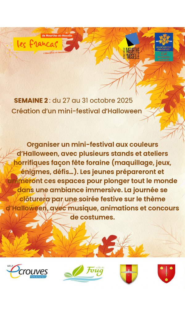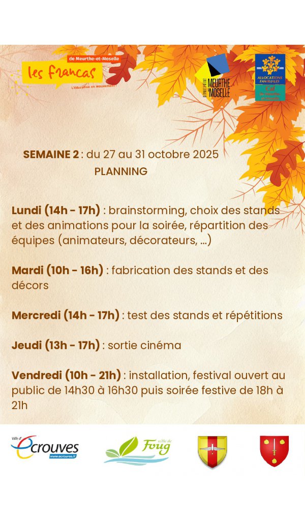 Plaquette du centre de loisirs des vacances d'automne avec le programme des activités proposées ce printemps.