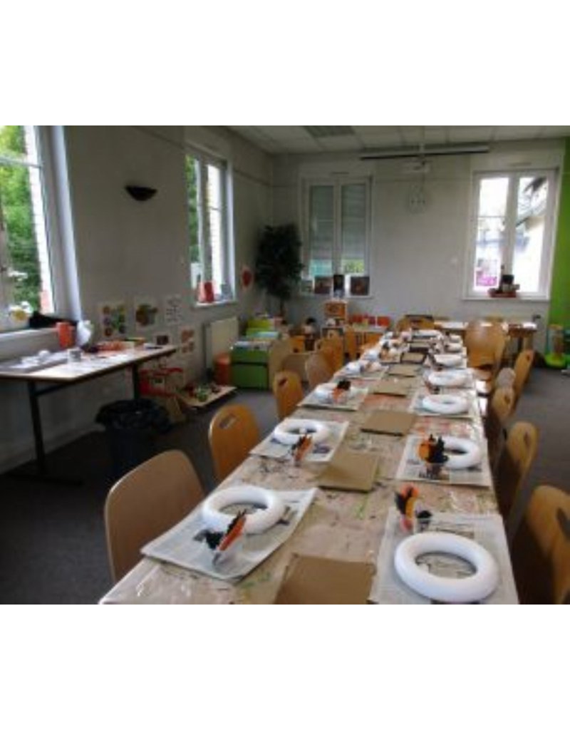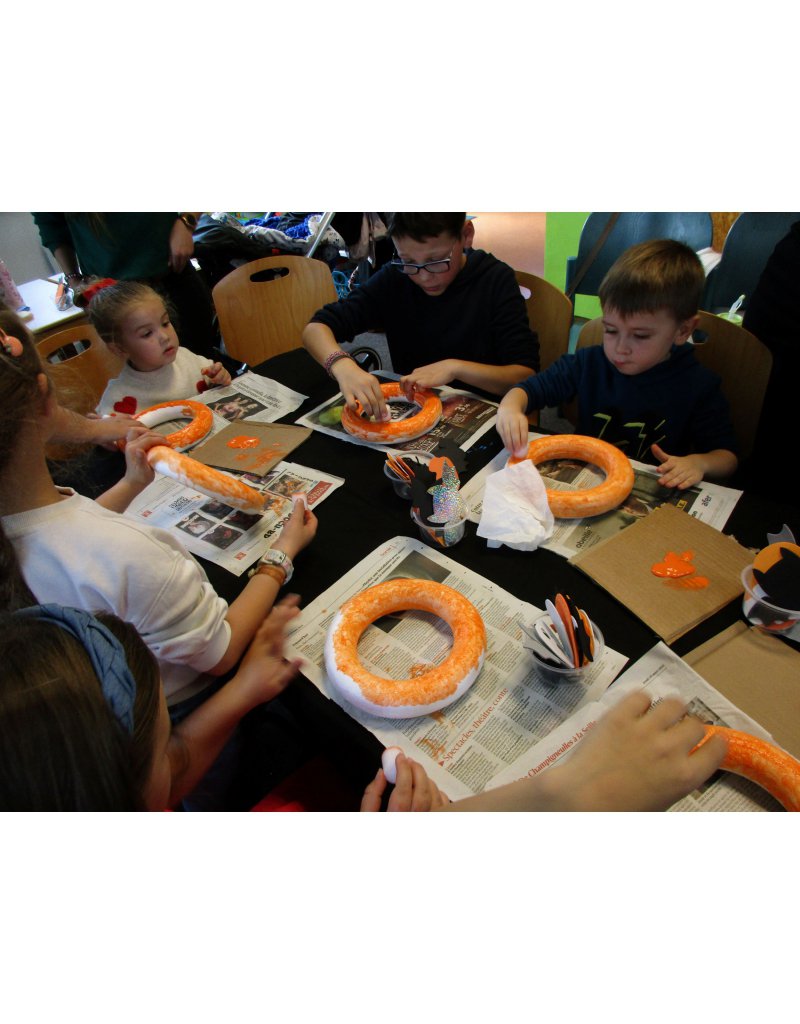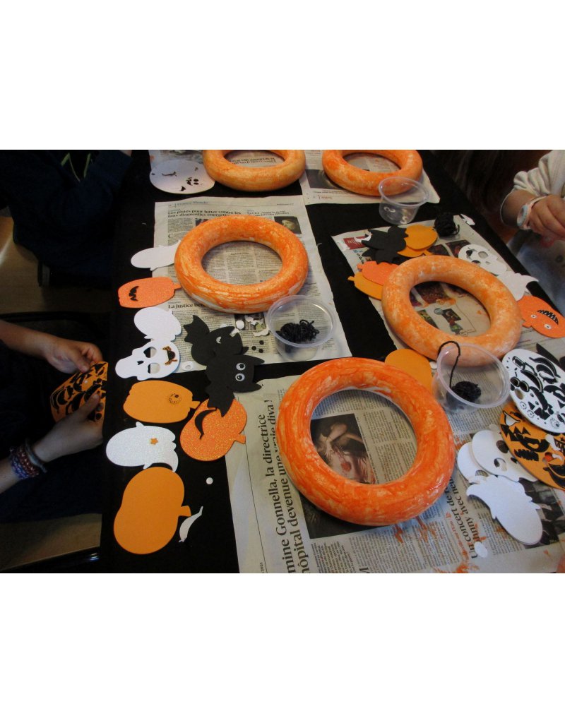 Fantômes, squelettes, chauve-souris, dents pointues, yeux globuleux ; peinture, paillettes…à assembler et à décorer pour fabriquer la couronne la plus monstrueuse !!