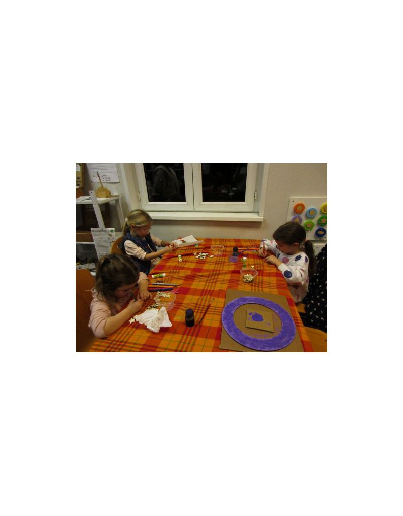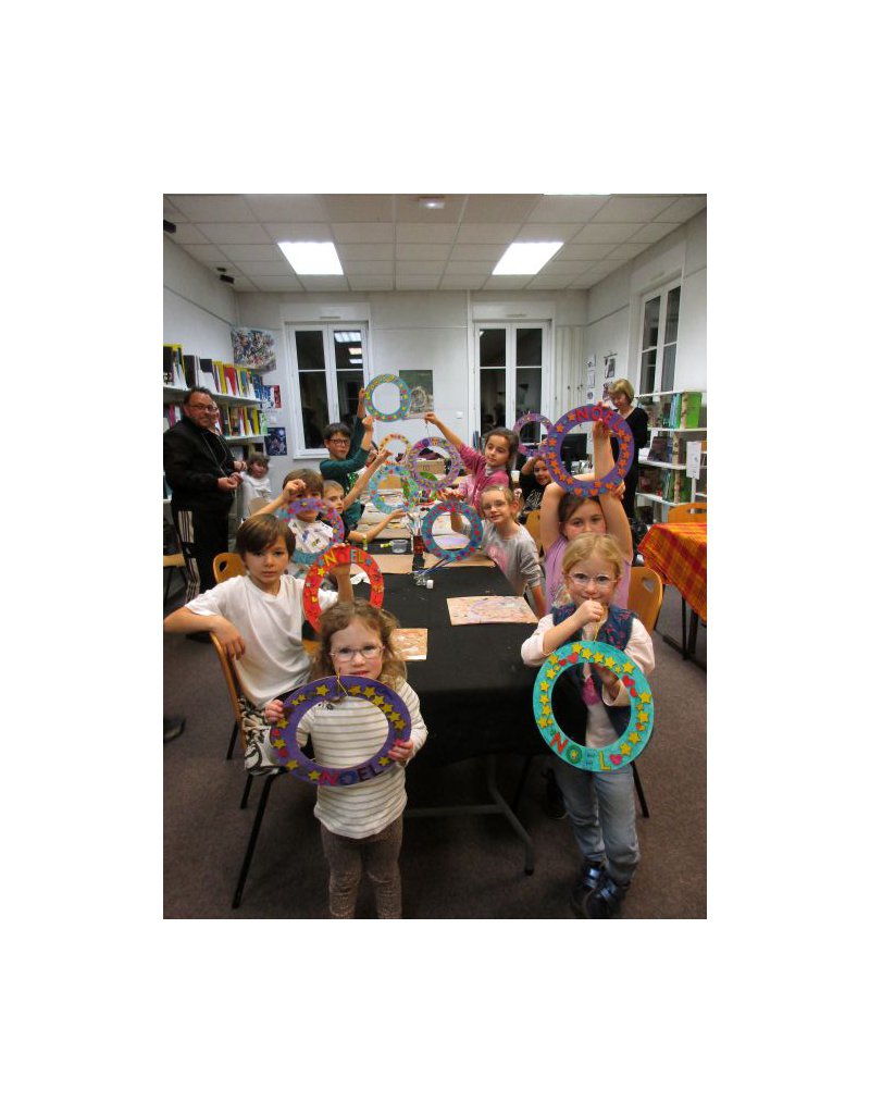 Dans un esprit créatif, une quinzaine d'enfants ont décoré une couronne de noël en bois avec différents motifs à suspendre.