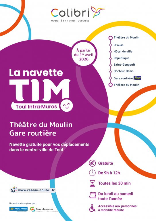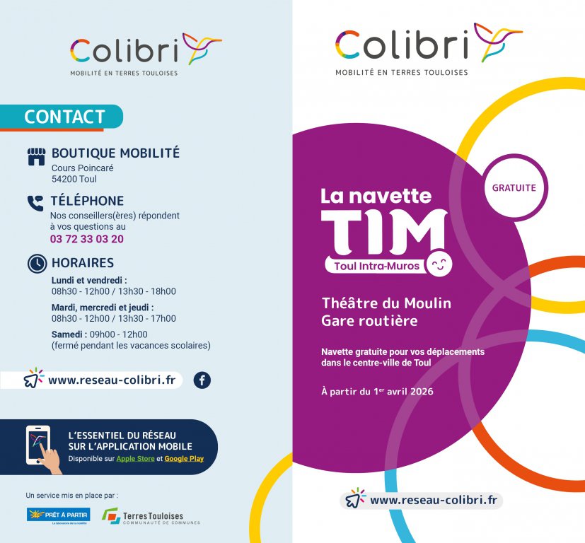 - Informations pratiques : Pour toute question, les usagers peuvent s'adresser à la Boutique Mobilité située Cours Poincaré à Toul (03 72 33 03 20), consulter le site www.reseau‑colibri.fr ou utiliser l'application mobile dédiée